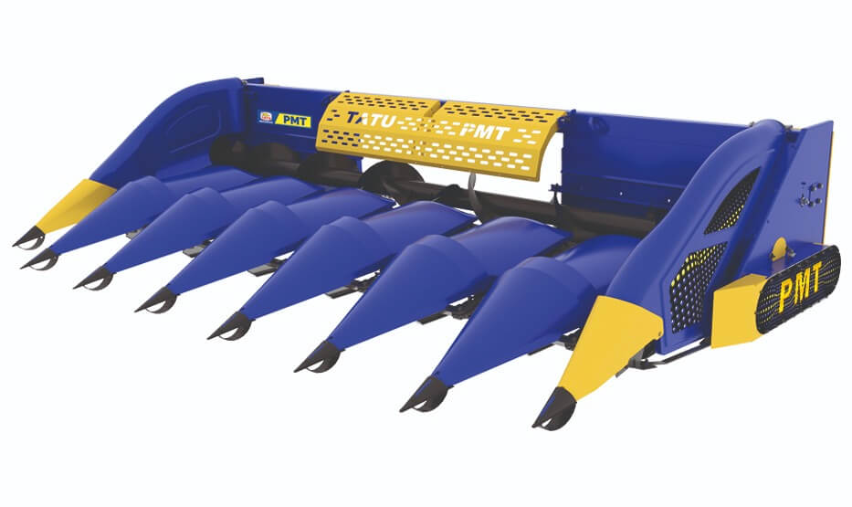 El Cabezal de Maíz – PMT – posee chasis intercambiable con todos los modelos de cosechadoras nacionales e importadas mediante utilización de moldura especifica para el acople al elevador de restos de culturas.