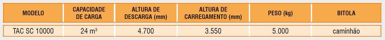 Está compuesto por una caja de carga construida con perfiles tubulares de 70 mm, con chapas expandidas en la parte frontal, trasera y lateral derecha para una mejor visualización y eliminación de impurezas, y chapas lisas en el piso y en el lateral de descarga.
